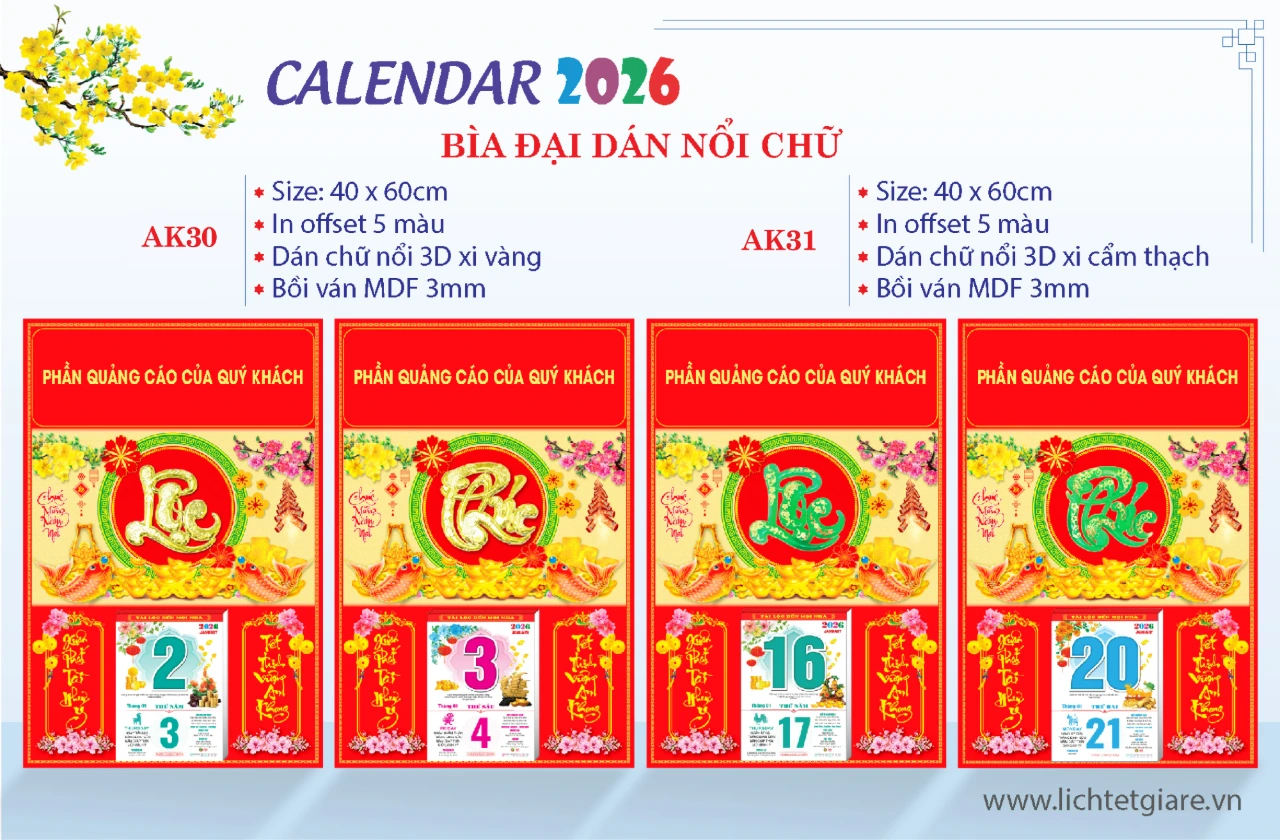Lịch Bloc Cực Đại 2026 Lộc Tấn Vinh Hoa 25×35cm
