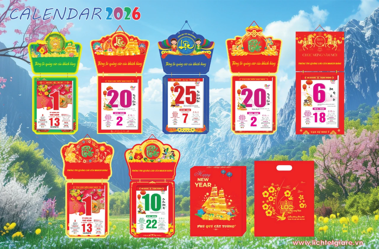 - Giao hàng: Toàn quốc, hỗ trợ in ấn theo yêu cầu, giao hàng nhanh chóng cho mùa Tết 2026.